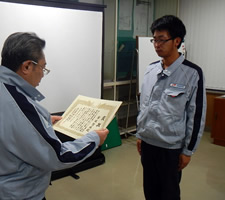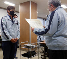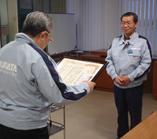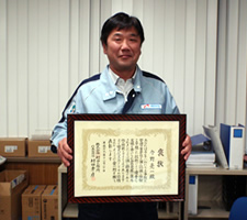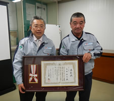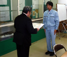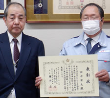 弊社では、社内規則を守り、工事施工管理の重要性を深く認識し、経験と技術により優秀な実績をあげた者及び事故防止等の安全衛生活動の取組みが特に優秀である者を総合的に評価し、会社発展に寄与した優良従業員として、その功績をたたえるとともに金一封を贈り表彰しています。