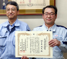 社員は通勤や現場往来などはもとより、日常生活においても交通安全の意識を高く持っています。その中でも特に交通安全に努力した社員を会社基準により金一封を送り表彰しています。