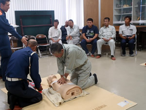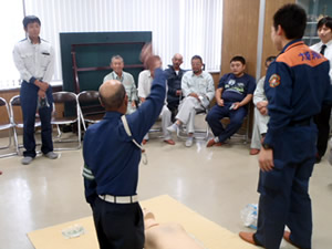 現場従事者、協力会社含めた全社員は緊急に備えるための実践訓練を毎年受講します。