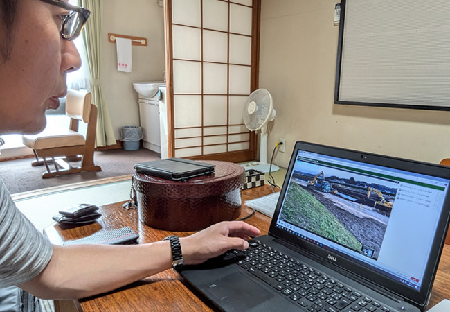 当現場ではICT技術はもちろん、近年多く活用されるようになった各種クラウドツールを用いて、「ワーケーションによる施工管理補助」を実施しました。
