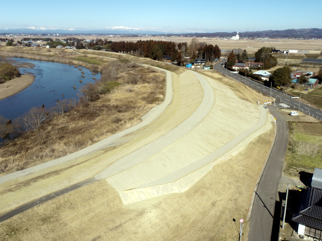 - 入社して一年間、堤防工事に配属され、着工から完成まで従事しました。