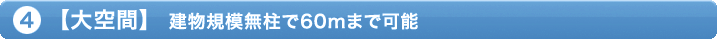 対象建築物は、平屋(2階も可能)の工場・倉庫・店舗・スポーツ施設(非住宅)で、在来工法より軽量、低価格、短工期、高品質、高断熱であり、建物規模はスパン方向は無柱で60mまで可能です。また、中間柱を入れれば150mまで可能です。