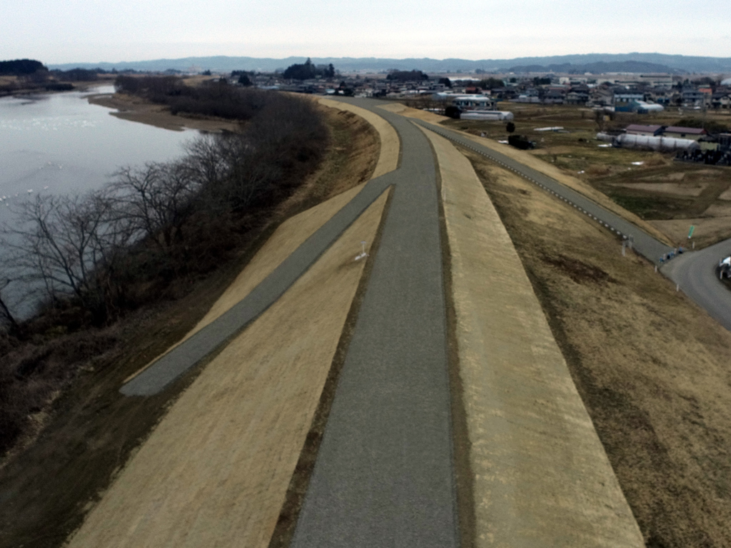 - 入社して一年間、堤防工事に配属され、着工から完成まで従事しました。
